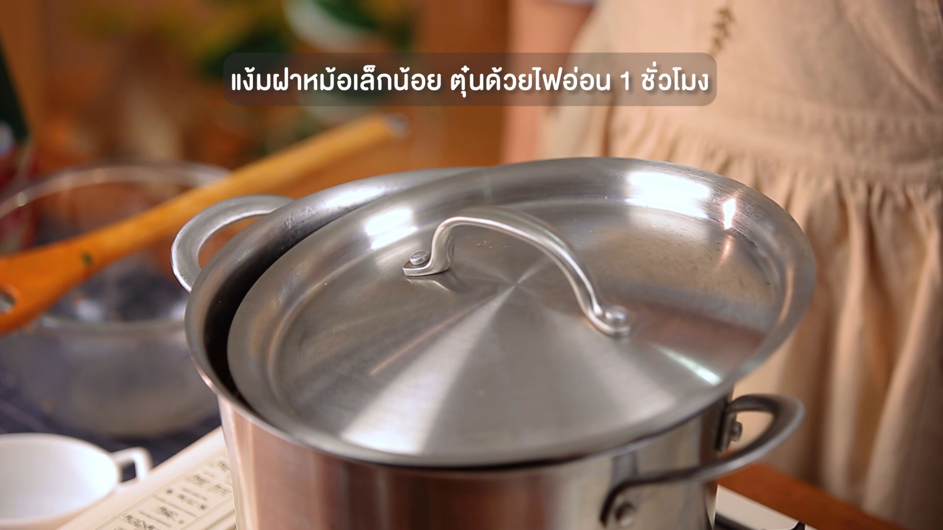 คนให้เข้ากัน ปิดฝาแง้มเล็กน้อย