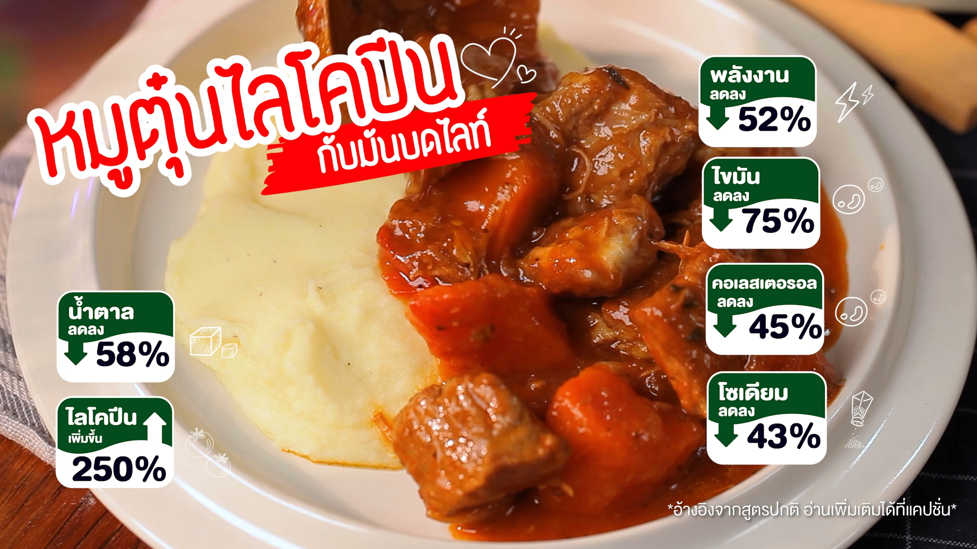 หมูตุ๋นไลโคปีน กับมันบดไลท์ เมนูที่ให้ทั้งความอร่อยลงตัว แถมเฮลท์ตี้ขึ้นกว่าเดิมเพราะได้ประโยชน์เน้นๆ จากไลโคปีน กับมันบดสูตรไลท์!