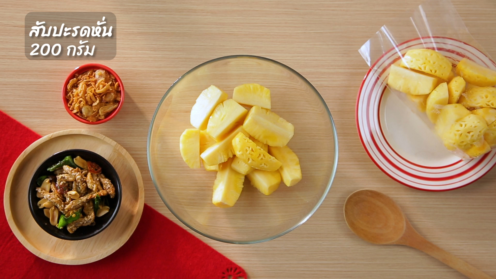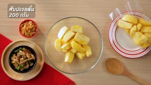 1.การนำสับปะรดที่หั่นเป็นชิ้นๆใส่ลงในชาม
